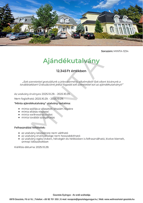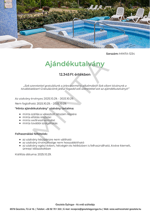 Az utalvány felhasználható a szálloda szolgáltatásaira.
