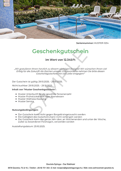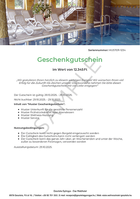 Der Gutschein kann für die Leistungen des Hotels eingelöst werden.
